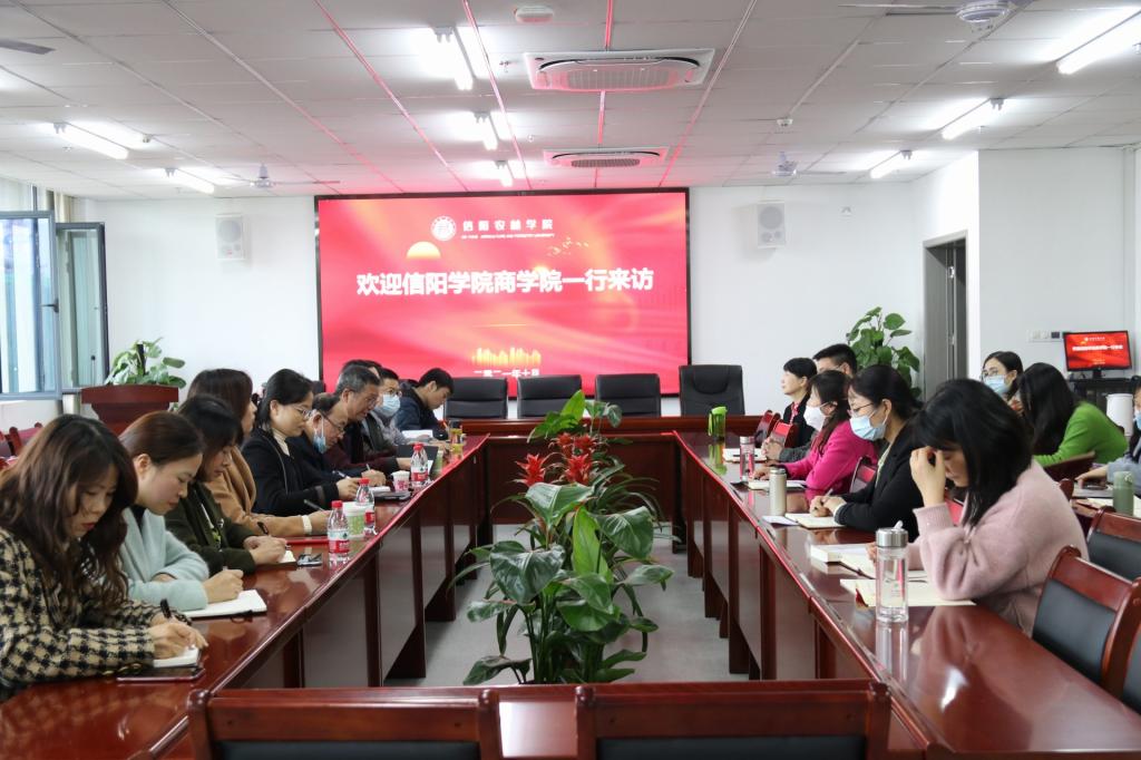 10月22日下午,信阳学院商学院于士良院长、胡秀云书记、李毓副院长一行10人赴财经学院开展院际交流。我院班子成员、杨华教授及科级以上干部参加了交流座谈,座谈会由院长郭春林主持。