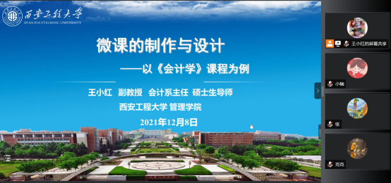 为进一步提高教师教学技能,推动教学改革和创新,12月8日晚上,财经学院会计学教研室邀请西安工程大学管理学院会计系主任王小红副教授作了关于“微课的制作与设计——以《会计学》课程为例”的专题讲座。本次讲座以线上形式进行,由财经学院副院长张立恒主持,会计学教研室全体教师参加。