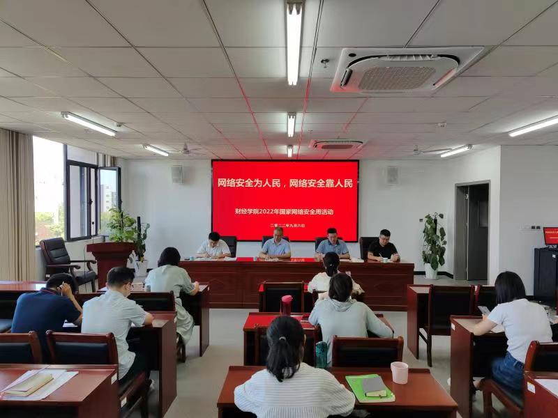 为深入学习宣传贯彻习近平总书记关于网络强国的重要思想,宣传贯彻习近平总书记对网络安全工作“四个坚持”的重要指示,按照《beat365在线平台官网2022年国家网络安全宣传周活动方案》要求,进一步提升财经学院全体教职工的网络安全意识和防护水平,普及网络安全知识,9月6日财经学院组织开展了以“网络安全为人民网络安全靠人民”为主题的学习宣传活动。