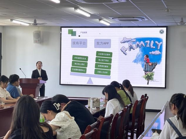 比赛过程中,参赛团队以精美的PPT、直观的数据分析、精心剪辑的视频及从容自信的精神面貌,分别从项目背景、产品功能特点、市场前景等多方面展开推介演示。最终,“药匠——续写匠心传奇”团队在十个参赛团队中获得一等奖。