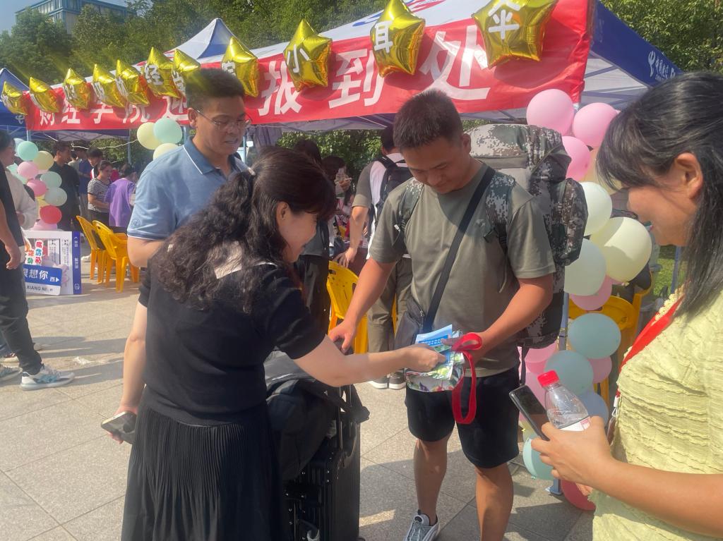 为了更加顺利的迎接你们的到来,一群群红蓝马甲们,搭建好迎新服务站,准备好摆渡车。细化流程,明确分工;衔接顺畅,井然有序;志愿服务, 热火朝天!
