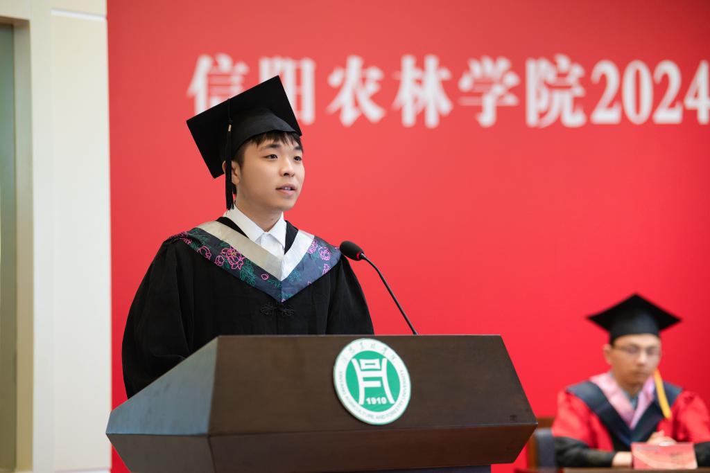 随后,院长郭春林发表了热情洋溢的致辞,她代表学院向462名毕业生表示衷心地祝贺!她说,作为2024届毕业生,意义非凡。大家一道见证了学校本科教学工作合格评估,一起走过了极不平凡的三年抗疫之路,携手经受住了一场艰苦卓绝的大考,在这非凡的日子里,同学们始终与学校同风雨、共进退,在风雨中历练、在奋斗中成长、在拼搏中闪光。临别之际、扬帆之时,作为师长、家人,站在同学们“诗和远方”的原点,她对毕业生提出了三点期待和嘱托:一是清晰确立自我人生目标。在谦虚谨慎的学习中不断进步,在勤奋不懈的工作中日益精进,一步一个脚印,稳扎稳打,用行动去证明自己。二是勇于直面挑战和失败。学会直面人生道路上各种挑战和困难,始终保持“不气馁、不抱怨、不放弃”的乐观心态,坚持不懈,勇毅笃行。三是用坚持坚守去结出丰硕果实。在未来的道路上,不断学习,不断进步,成为社会的栋梁之才。