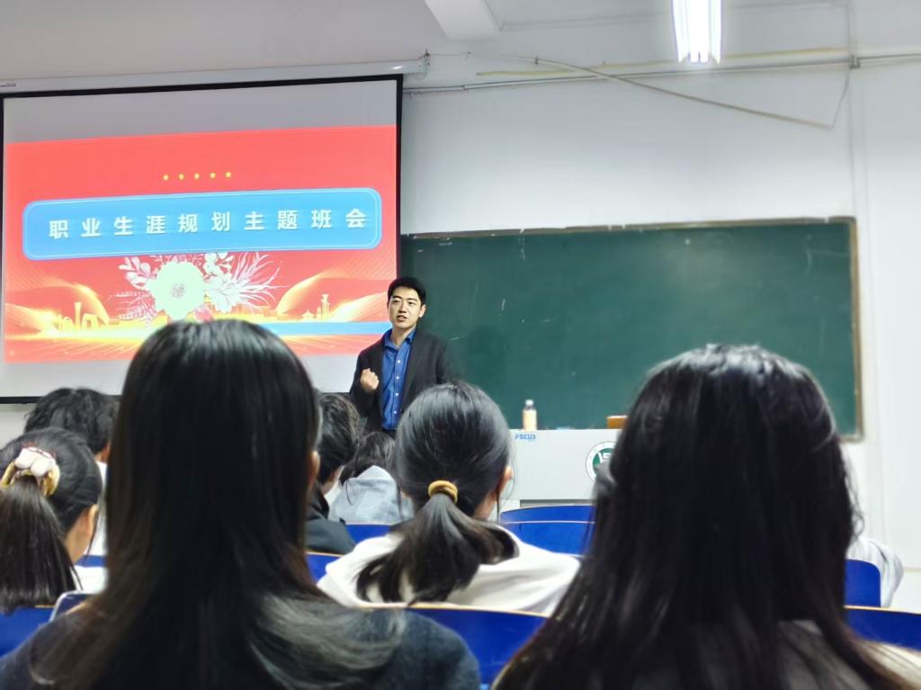 班会伊始,辅导员们从宏观层面阐述了大学阶段进行职业生涯规划的重要性,并结合管理学院的学科特色和专业优势,分析了当前市场对管理类人才的能力需求,指出“早规划、早准备、早行动”是赢得未来职场主动权的关键。辅导员们通过生动的案例和详实的数据,引导同学们思考“我是谁”、“我想成为谁”以及“我该如何到达”这三个核心问题,鼓励大家从大一开始就要积极探索自我,明确兴趣所在,将个人成长与国家社会发展需要相结合,绘制属于自己的大学蓝图和职业路径。在班会互动环节中,同学们积极提问,与辅导员们进行深入交流,辅导员们鼓励大家制定个人短期成长计划,定期复盘调整,为未来就业做好充足准备。