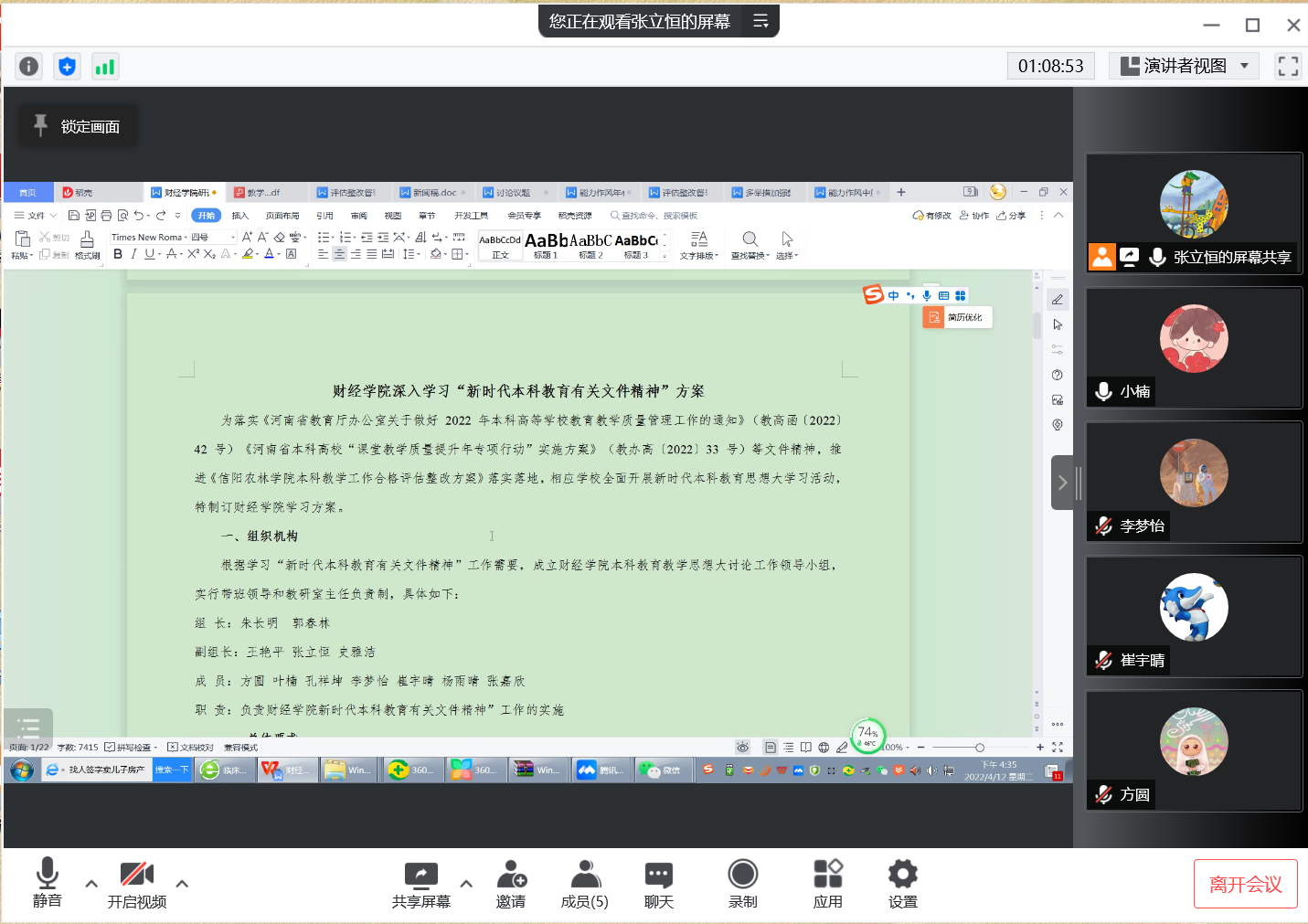 为进一步落实《beat365在线平台官网“教学质量年”实施方案》,结合财经学院总体部署和工作实际,4月6日,财经学院召开了线上教学质量年活动专题会议,财经学院副院长张立恒、教研室主任及部分专业教师参加了会议。