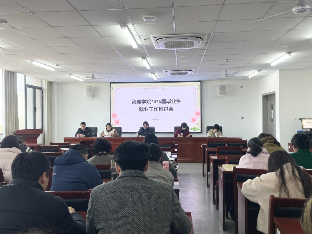 为深入贯彻落实国家关于高校毕业生就业创业工作的决策部署,扎实做好学院就业工作,精准推进2026届毕业生就业工作提质增效,管理学院于3月10日在双创楼408会议室召开2026届毕业生就业工作推进会。学院领导班子、专兼职辅导员及专任教师参加此次会议。