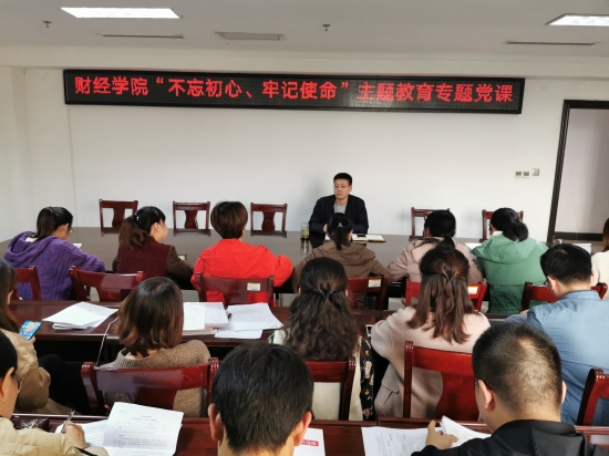 按照beat365在线平台官网“不忘初心、牢记使命”主题教育实施方案要求,10月15日下午,财经学院党总支书记朱长明在综合楼821会议室以《传承大别山精神 牢记初心使命》为题为学院全体党员老师上了一节“不忘初心、牢记使命”主题教育专题党课。