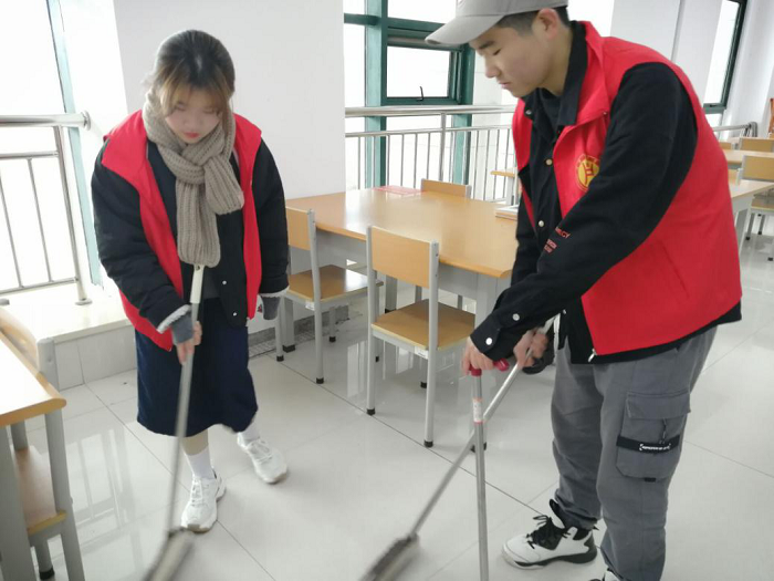 12月30日,财经学院文明示范班——财务管理2019-4班学生到学校图书馆开展了座椅整理及卫生打扫志愿服务活动。