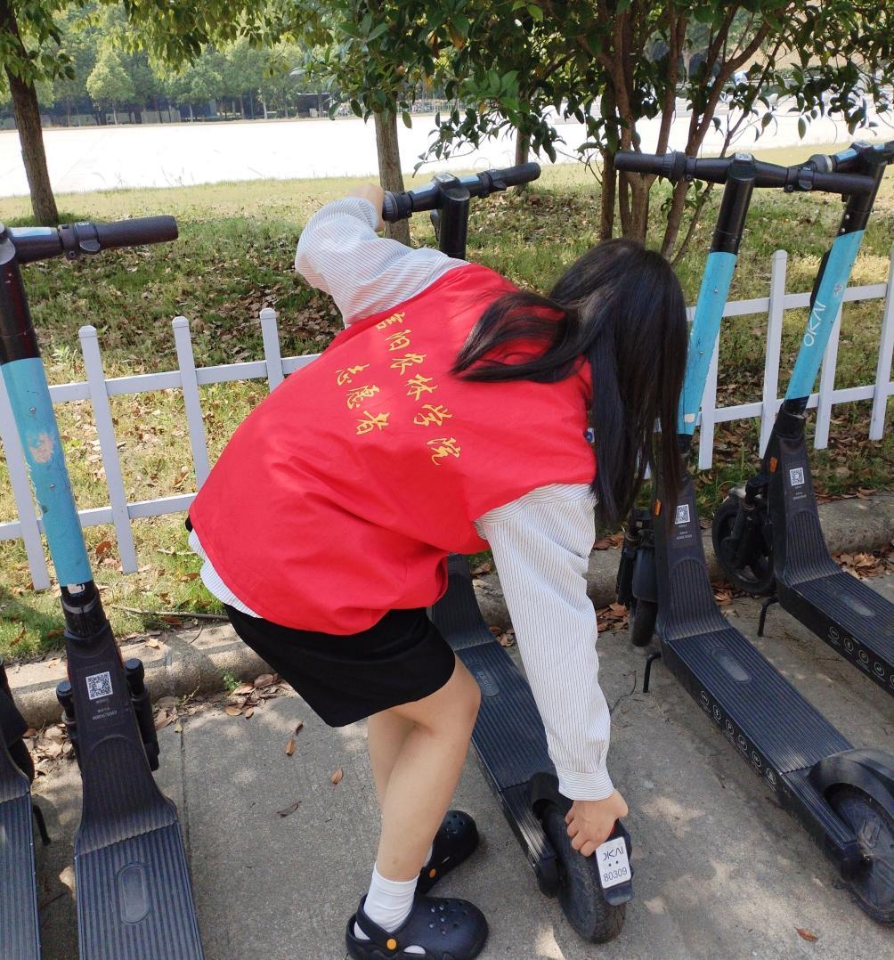 活动中,管理学子们围绕教学楼,将一个个乱停乱放的单车摆放整齐,并对前来停放车辆的同学进行引导,普及规范停车的重要性。同学们纷纷表示在今后的生活中,会在使用完单车后按照要求整齐、有序停放,并对其他不良行为进行劝阻,做文明停放的宣传者,营造安全、文明、和谐的校园秩序。