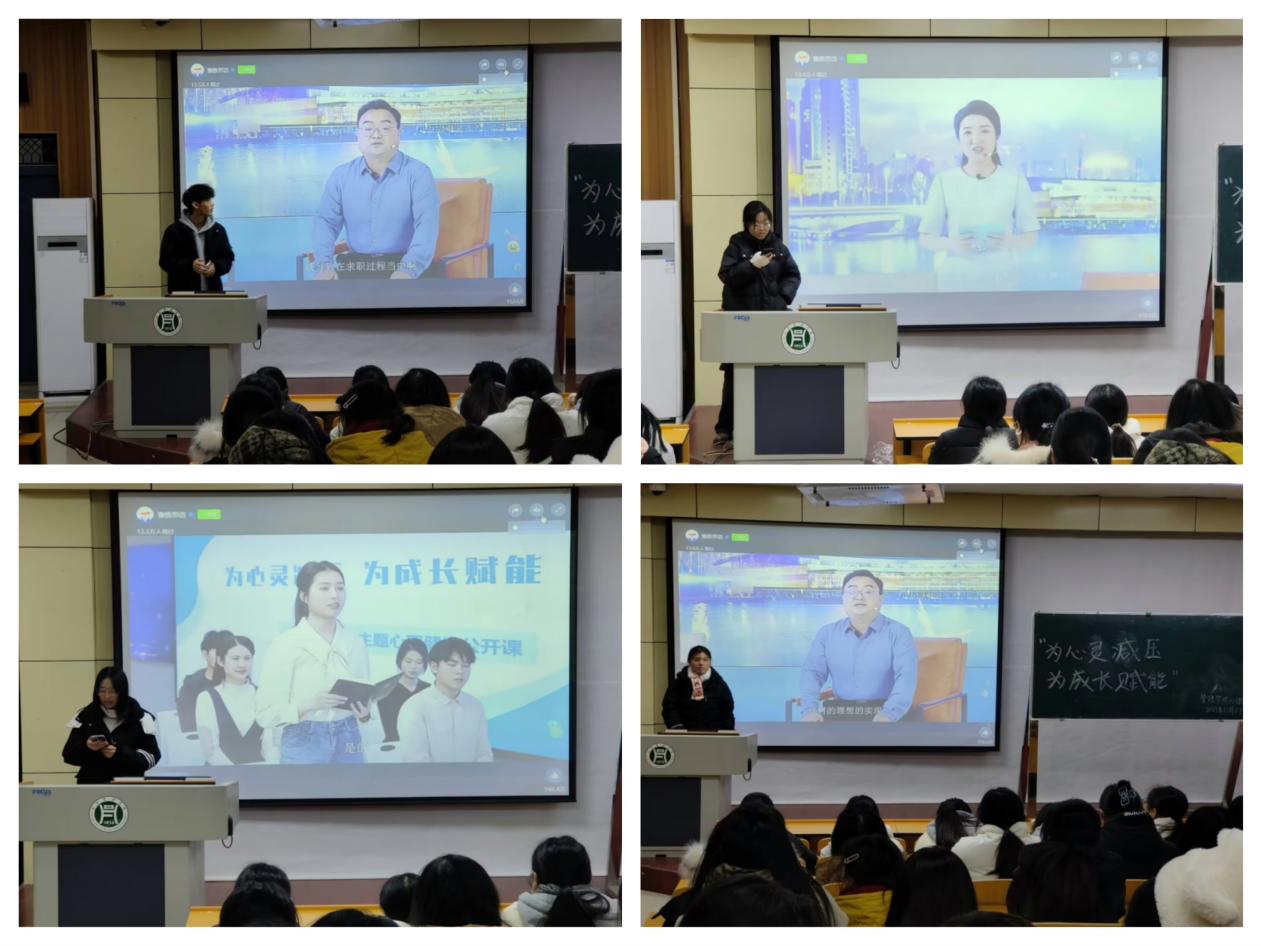 为进一步加强我院大学生心理健康教育,帮助学生正确认识压力,学会如何管理压力,提高大学生心理健康素质,管理学院积极响应学校的号召,于12月17日组织学生代表、家长代表及教师在二教204,集中观看“为心灵减压 为成长赋能”主题心理健康公开课 ,其余学生、家长及老师采用分散观看的方式。