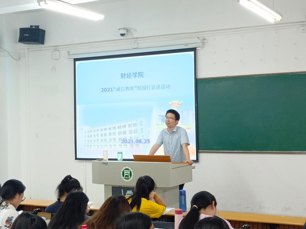 为引导广大青年学生珍爱信用,提高学生诚信意识、金融意识、风险意识、法律意识,帮助他们树立正确的消费观和价值观,财经学院于6月25日在2教115教室开展“诚信教育校园行”宣讲活动,本次活动由毛帅老师主持。