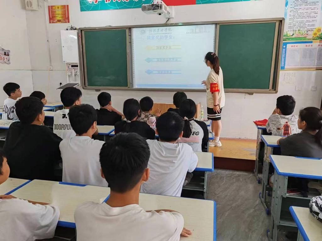 另一部分资助宣传大使返回母校“现身说法”,在本次“学生资助政策宣传暑期行”宣传活动中,宣讲团队通过PPT进行了现场讲解,发放了资助政策宣传手册,以国家奖助学金、国家助学贷款、勤工助学、校内奖助学金、困难补助、学费减免等多种方式并举的资助政策体系为主要宣传内容,让学弟学妹们深入了解国家及学校的各类资助政策。同时,大力倡导“履约践诺、诚信为人”的精神,弘扬社会主义核心价值观。