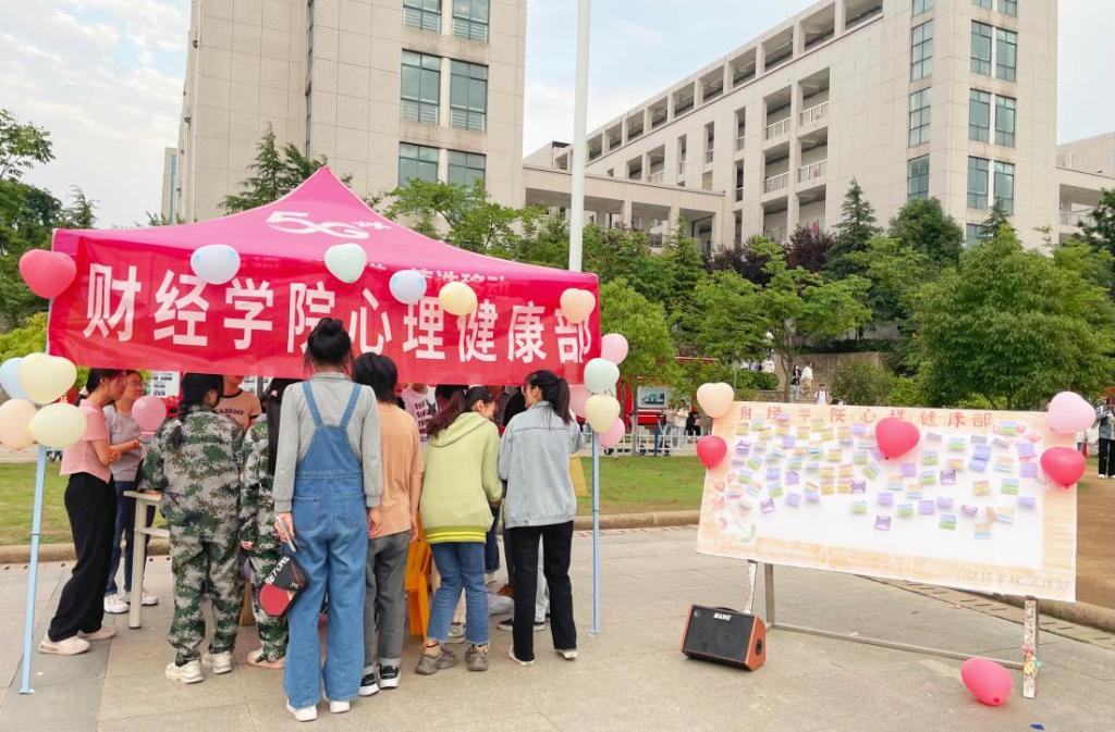为积极响应校心理健康教育与咨询中心的号召,围绕立德树人的根本要求,普及心理健康知识,缓解我院学生的生活、学业压力,全面提升学生心理健康素养,营造良好的心理育人校园氛围,财经学院于2023年5月22-23日在汝宁广场开展“5.25心灵长廊”广场摆摊活动。