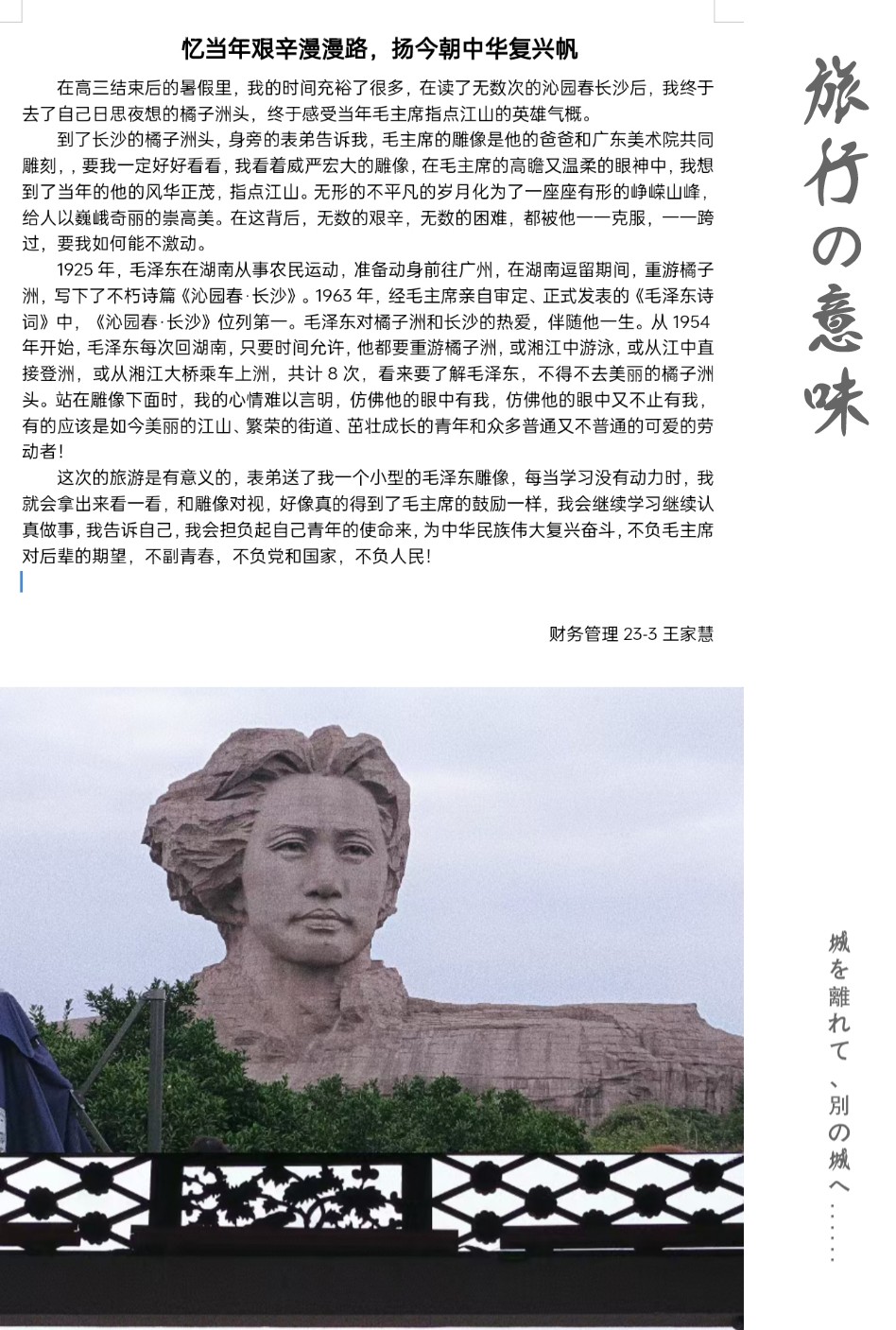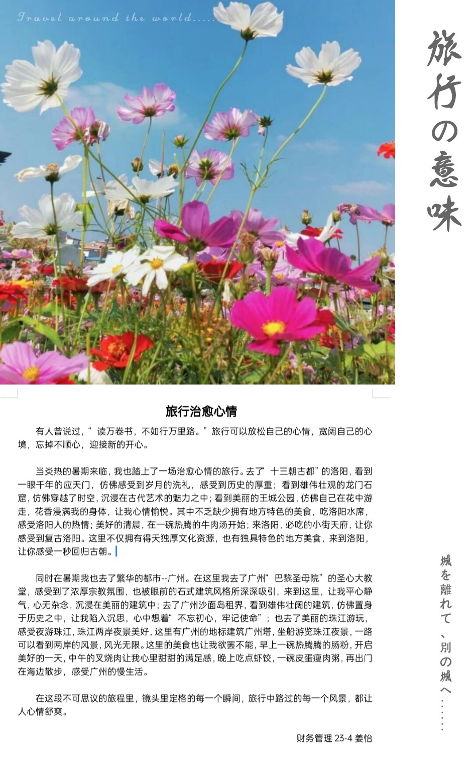 为引导同学们发现生活中的美好,留心并记录旅行中发生的故事,分享旅途中的快乐时光,管理学院于10月29日组织开展“分享治愈心灵的旅行”主题征文活动,管理学子积极参与。