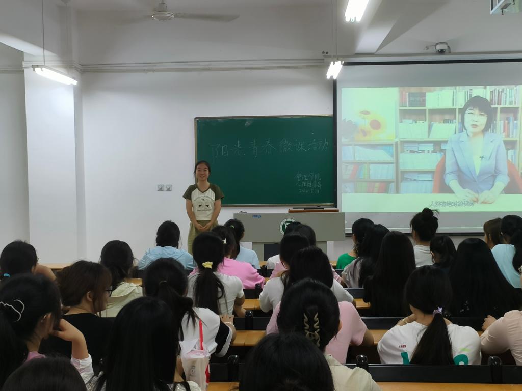为积极响应教育部提出的“全国学生心理健康宣传教育月”相关工作的要求,进一步提高我院学生心理健康工作实效,营造和谐温馨的校园文化氛围,管理学院于5月24日—26日期间组织学生通过线上与线下、集中与分散的方式观看“阳光青春”大学生心理健康大讲堂精品微课。