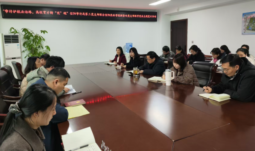 为深入贯彻落实国家关于全面依法治国、加强宪法宣传教育的重要指示精神,紧密围绕立德树人根本任务与学校法治校园建设工作部署,12月5日,信阳市审计局第三党支部联合beat365在线平台官网财务处审计处党支部开展“审计护航法治路,高校育才铸‘宪’魂”联学宪法主题党日活动。活动由信阳市审计局第三党支部精心组织,会议聚焦宪法新增变动与新修订的《审计法》,并深入剖析两个审计案例,为党员们带来了一场深刻的法治教育,20余名党员参与其中。