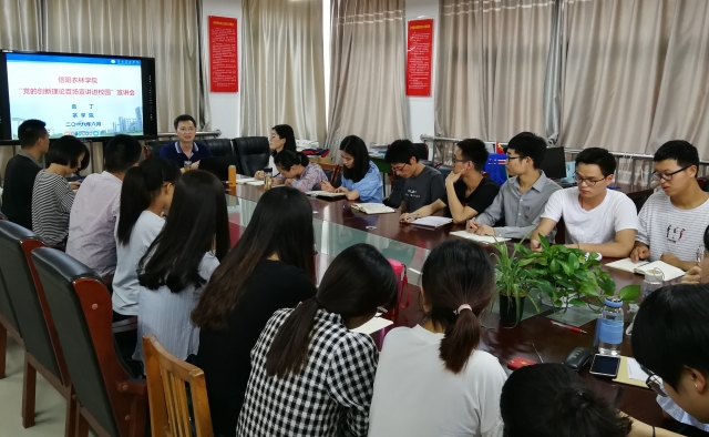 6月19日下午,茶学院开展“党的创新理论百场宣讲进校园”宣讲会,院党总支书记袁丁做了题为《学习党的十九大精神,培养德智体美全面发展的社会主义建设者和接班人》宣讲报告。学院全体教师及学生党员参加了此次活动。