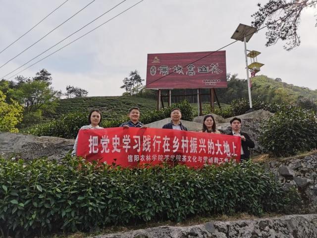 为把党史学习教育与贯彻落实习近平总书记对学校重要批示精神贯通起来,巩固深化“不忘初心、牢记使命”主题教育成果,持续推动党史学习教育走深、走心、走实,4月10日,茶学院茶文化与营销教工党支部先后走进光山静居寺茶厂和商城县其鹏茶叶有限公司,开展党史学习践行活动,把党史学习教育搬到了田间地头。