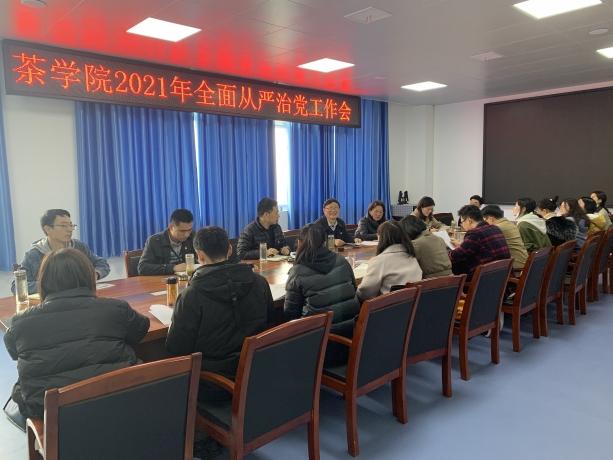 3月23日下午,茶学院在1A五楼召开2021年全面从严治党会议。党总支书记郭桂义就2021年全面从严治党工作作总体部署。学院全体教师参加会议;会议由党总支副书记朱建梅主持。