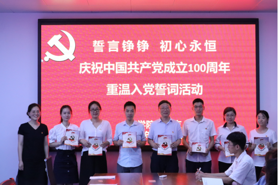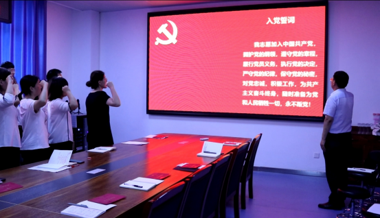 活动共分为五项。第一项全体起立,奏唱国际歌。第二项由支部书记丁岚、梁玉洁为新发展党员佩戴党员徽章,欢迎新成员加入茶学院党员之家。仪式第三项,郭桂义同志为学院上半年入党的同志们赠送政治生日贺卡,并合影留念。第四项,由郭桂义同志领誓,重温入党誓词。大家高举右手,握拳过肩,庄严宣誓,现场氛围庄重肃穆,宣誓声铿锵有力,表明了党员对党忠诚、终生不渝的初心与信念。仪式第五项,郭桂义同志讲话,希望在座师生,在今后的学习、工作中,牢记自己的承诺,以积极进取的心态和创先争优的精神践行入党誓词,鼓足干劲、师生同心同力,为学校本科教学合格评估贡献自己的力量。