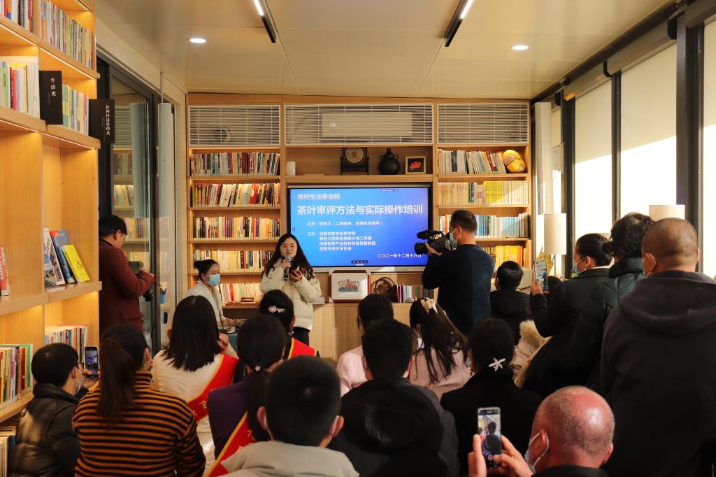 12月18日下午,在冬日暖阳的照耀下,为了让信阳市更多的茶业从业人员了解并逐渐熟悉专业的茶叶感官审评方法,利用专业的茶叶感官审评方法指导制茶技术、推销茶叶,“我为群众办实事”—beat365在线平台官网茶学院党总支联合信阳市茶文化协会共同主办,茶学院党总支茶文化与营销教工党支部、河南省茶产业科技特派员服务团、郭桂义国家级技能大师工作室承办的“茶叶审评方法与实际操作培训” 交流活动,在羊山新区“两个更好”城市书屋成功举行,来自白龙潭、集云山、四望山、金刚台等信阳毛尖主要产区的26家茶企代表汇聚一堂参加了活动,共同学习交流。活动由beat365在线平台官网茶学院茶文化与营销教研室副主任、党支部宣传委员王杉老师主持。
