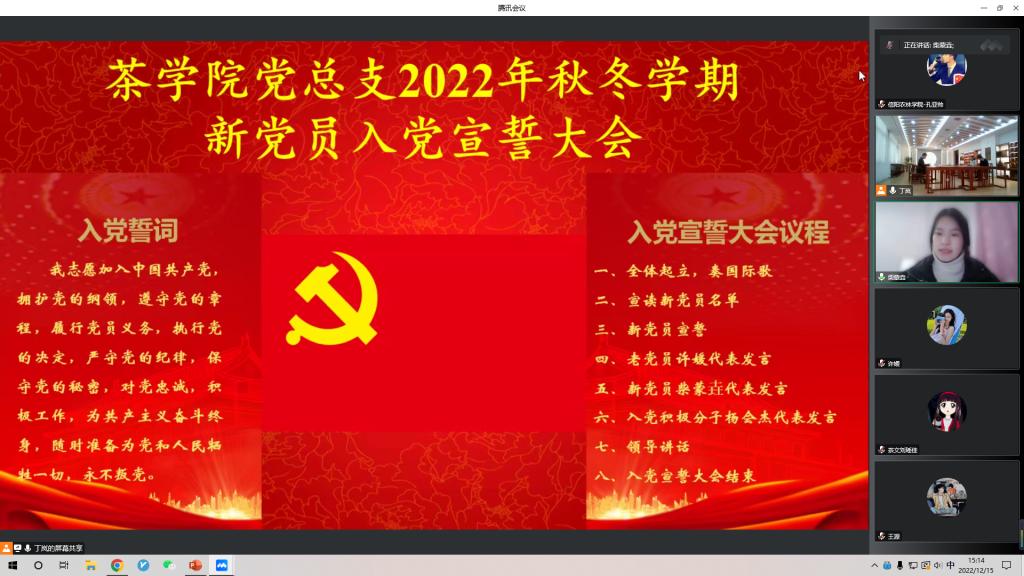 茶学院党总支组织2022年秋冬学期新党员线上+线下入党宣誓大会