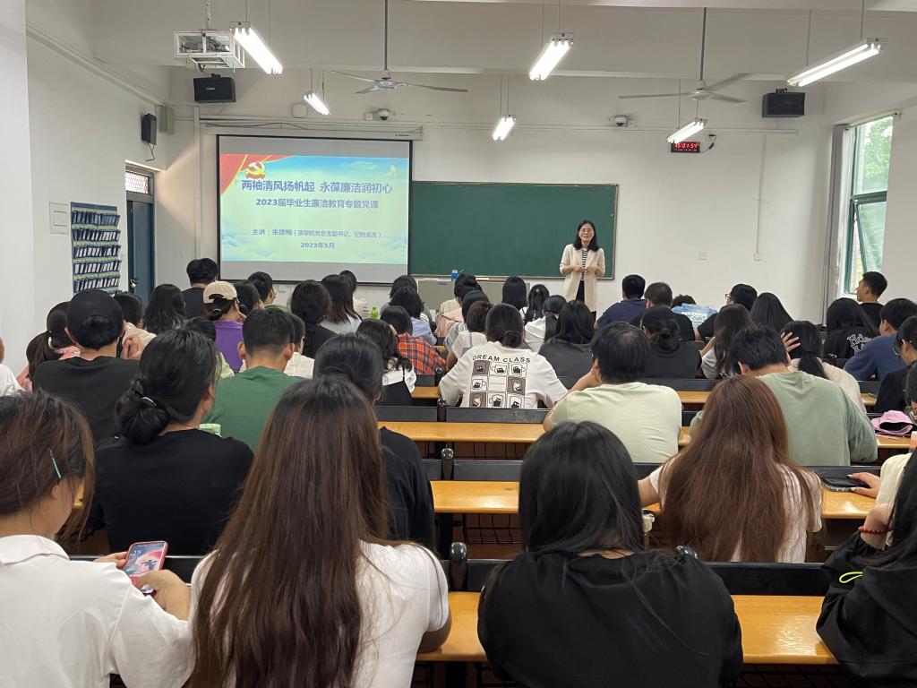 为做好学校2023届毕业生廉洁教育工作,强化大学毕业生廉洁自律意识,增强廉洁从业、廉洁修身、廉洁齐家的思想自觉,打牢道德根基,走好迈向社会的第一步,扎实推进“清廉校园”建设,5月31日下午茶学院党总支副书记、纪检委员朱建梅为2023届毕业生上廉洁教育专题党课。茶学院专职组织员、毕业班辅导员丁岚及2023届毕业生共140余人参加。