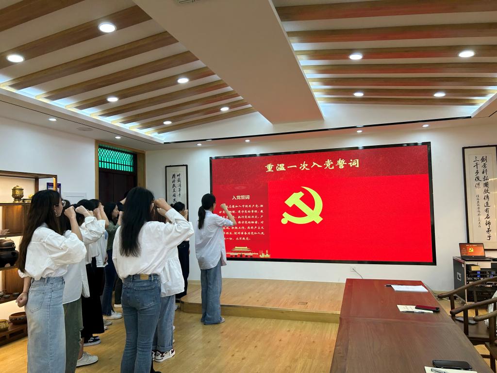 第五项,重温一次入党誓词。面向党旗,举起右拳进行庄严宣誓,回顾入党铮铮誓言,让毕业生党员同志更加坚定了入党信念和为共产主义事业奋斗终身的决心。