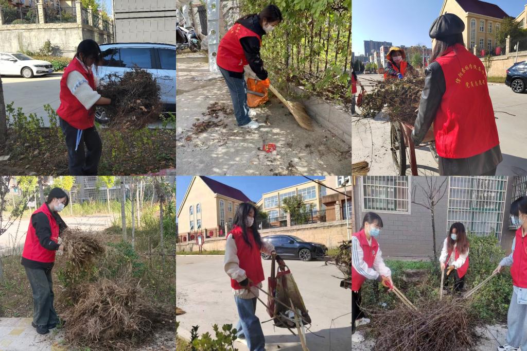 活动第二项,支部同学们协助社区开展“清洁家园”环境卫生整治活动。梁玉洁老师带队,将同学们进行分组,分别前往千禧社区A、B区开展卫生清扫工作。活动中,志愿者们发扬不怕脏、不怕累的奉献精神,全面清扫了小区路面垃圾和楼道杂物,对小区内楼梯、过道、柱子、宣传橱窗周围等张贴的小广告和顽固胶渍进行了铲除清理,集中清理了绿化带中的堆积物、大型垃圾,彻底清除了小区内的顽固垃圾,有效提升了小区整体卫生水平,改善了居民居住环境。