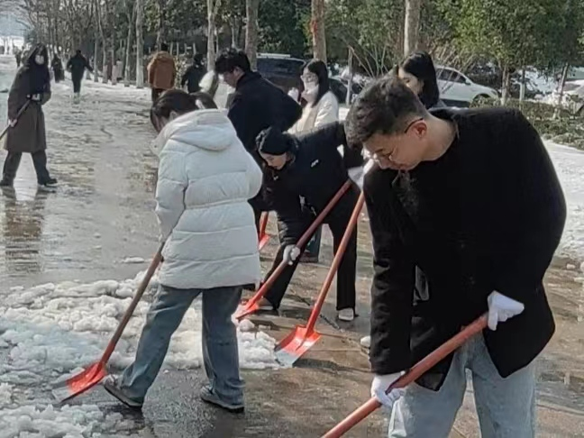 茶学院学生党支部开展“铲雪除冰保安全”二月主题党日活动