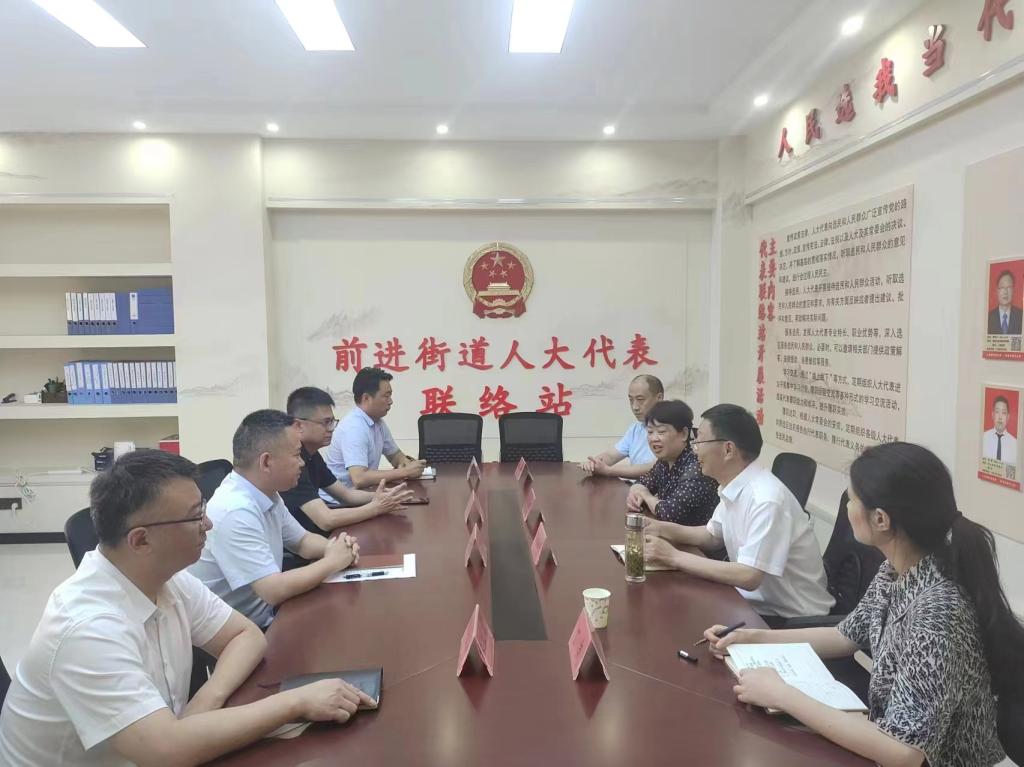郭桂义教授实地考察了前进街道办事处公共法律服务工作站、党政便民服务中心、前进街道社会治理室,并与工作人员交流,了解工作内容,对切实可行的便民措施、认真细致的工作态度给予肯定。在人大代表联络站,就如何发挥人大代表联络站工作职能与羊山新区党委副书记刘海霞、羊山新区人大政协联络办公室主任杨凯、街道党工委书记张少莹,街道党工委副书记、主任杨俊超,街道党工委副书记余开广,街道党工委委员、人大工委主任张立森等进行了交流座谈。