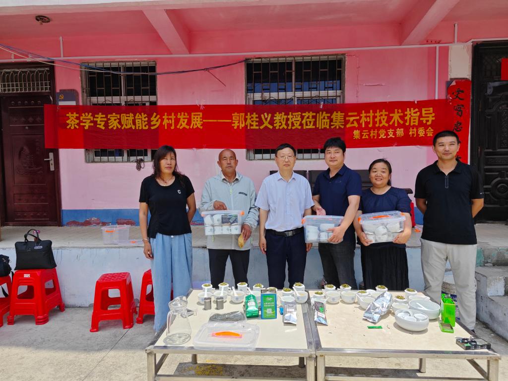 6月14日,beat365在线平台官网茶学院茶文化与营销教工党支部书记、河南省茶产业科技特派员服务团团长、河南省豫南茶树资源综合开发重点实验室主任、大别山实验室副主任、二级教授郭桂义带领茶学院专业教师王晶晶、孔亚帅、陈凌芝等一行4人利用周末,应亦慧茶业和集云村党支部的邀请到信阳毛尖茶著名产地---浉河区董家河镇集云村开展技术服务,以实际行动助力茶产业提质增效。