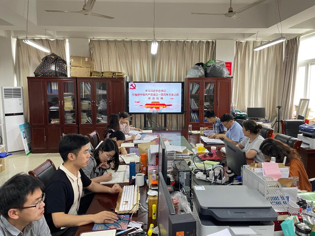 百年历史波澜壮阔,崭新征程初心如磐。7月6日下午,茶学院于2C501开展了“学习习近平总书记在庆祝中国共产党成立100周年大会上的重要讲话精神”的集体学习教育活动。茶学院党总支书记郭桂义领读了讲话部分内容,他强调,我们应该深刻领会习近平总书记重要讲话的精神实质,坚定不移沿着习近平总书记指引的方向奋勇前进。要深刻学习领会全面建成小康社会的庄严宣告;深刻学习领会伟大建党精神;深刻学习领会习近平总书记围绕“以史为鉴、开创未来”提出的“九个必须”的根本要求,感党恩、听党话、跟党走,增强“四个意识”、坚定“四个自信”、做到“两个维护”。