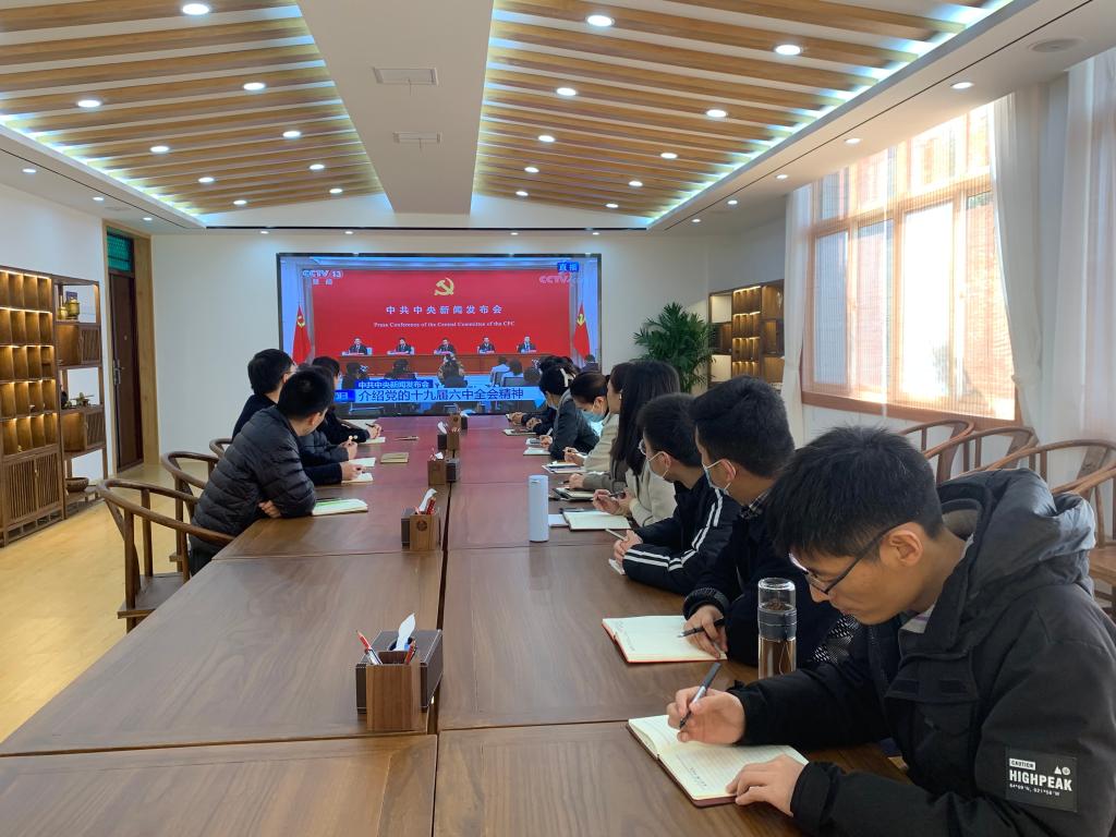 11月12日,茶学院党总支组织全院师生收看了党的十九届六中全会精神新闻发布会,认真学习了相关情况介绍,全面掀起学习贯彻全会精神的氛围。