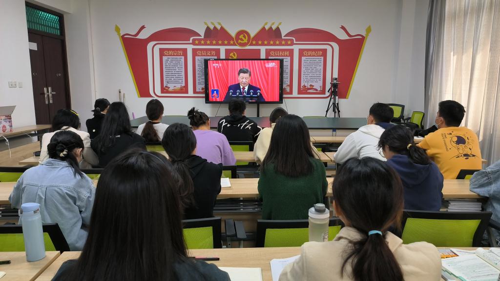 10月16日上午,中国共产党第二十次全国代表大会在北京人民大会堂隆重开幕,习近平总书记代表第十九届中央委员会向大会作报告。茶学院全体师生通过多种方式,认真收听收看了中国共产党第二十次全国代表大会开幕会,聆听报告全部内容,教师和部分学生党员代表在1C201收看,学生党员在1C307收看,同学们在教室和宿舍集体收看。
