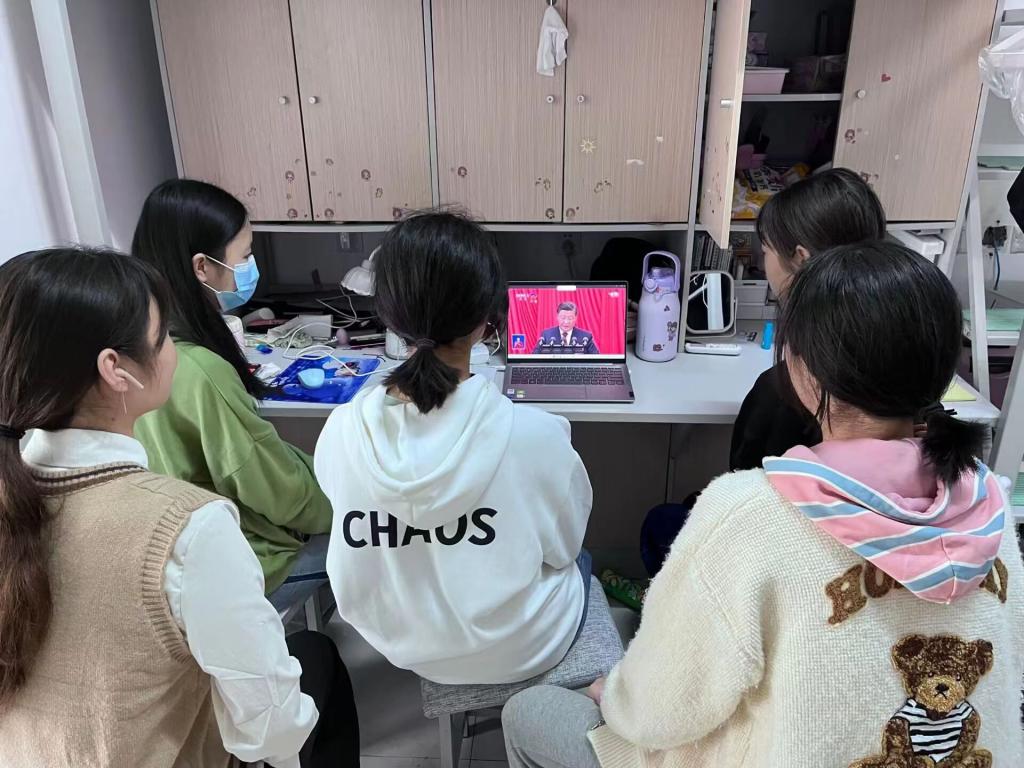 收看结束后,大家纷纷表示,中国共产党第二十次全国代表大会是在全党全国各族人民迈上全面建设社会主义现代化国家新征程、向第二个百年奋斗目标进军的关键时刻召开的一次十分重要的大会,大会让全体师生备受鼓舞,精神振奋。大家表示要认真学习、深刻领会大会精神,用党的最新理论成果武装头脑、指导实践、推动工作,在自己的学习、工作岗位上努力提升自我,守正创新,踔厉奋发、勇毅前行,为全面建设社会主义现代化国家、全面推进中华民族伟大复兴而团结奋斗。