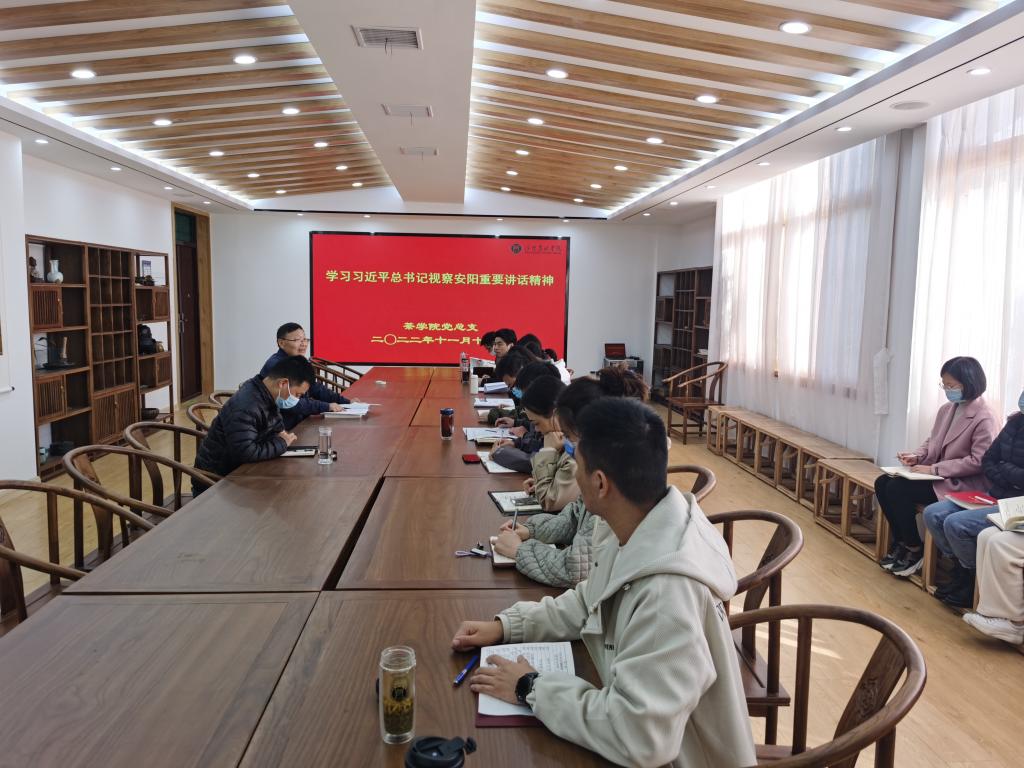 11月15日下午,茶学院党总支在1C201召开理论学习会,组织再次学习习近平总书记视察安阳重要讲话精神,专题学习研讨红旗渠精神。全体教职工参加会议,会议由学院院长、党总支书记郭桂义主持。