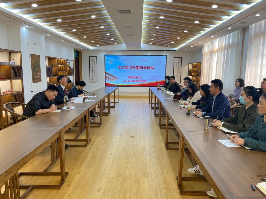 为深刻领会学习贯彻全国两会精神的重大意义,掀起学习贯彻全国两会精神热潮,3月14日,茶学院组织全院教师学习贯彻2023年全国两会精神。会议由党总支副书记朱建梅主持。