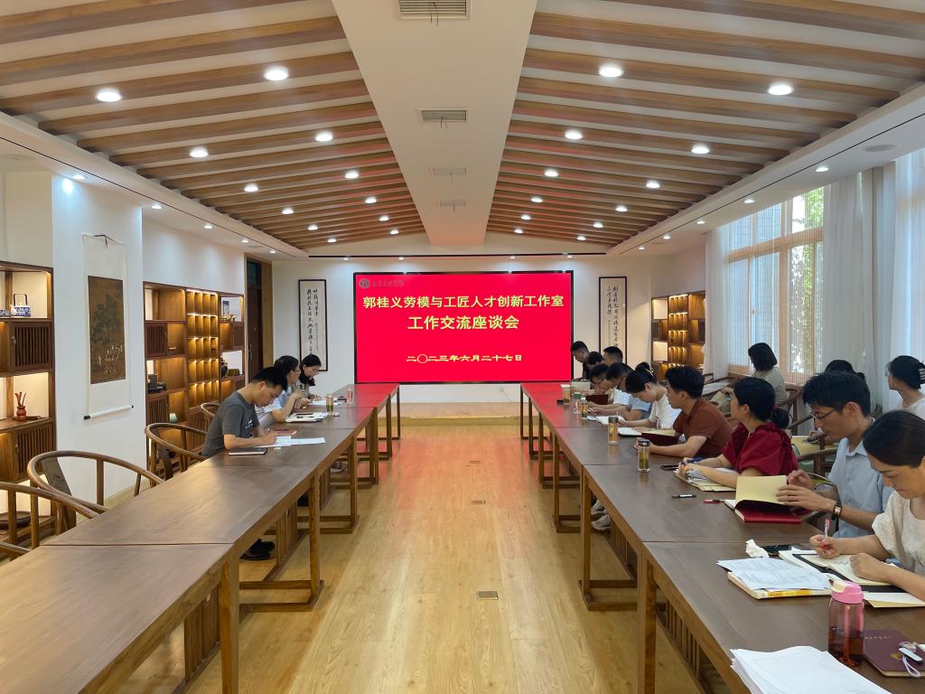为充分发挥劳模、优秀工匠人才、名师的示范引领作用,进一步加强学科建设,促进教学科研水平不断提升,2022年12月,“郭桂义‘师带徒’团队”被命名为河南省教科文卫体系统“师带徒”标兵。2020年12月,郭桂义科技人才创新工作室被命名为河南省教科文卫体系统“劳模和工匠人才创新工作室”。6月27日下午,郭桂义“师带徒”团队和劳模和工匠人才创新工作室在茶艺室召开工作交流座谈会,团队成员均参加了座谈会,座谈会由团队带头人、劳模和工匠人才创新工作室领办人、茶学院院长、二级教授郭桂义主持。