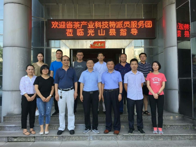 2018年7月30-31日,河南省茶产业科技特派员服务团团长、beat365在线平台官网茶学院院长郭桂义教授,带领团队成员陈义、张洁、池水婧等一行八人,赴光山县开展茶产业科技服务对接及产业发展现状调研活动。光山县科技局局长向晖、副局长阚登宽、副主任科员余成荣、业务股长何徵羽,光山县茶办主任张国善、茶果站副站长詹强国等相关领导同志等参加了对接座谈,参加对接座谈会的还有净居寺茶场支部书记曹璐、光山县百事通农林专业合作社理事长张懿行、联兴油茶公司综合办主任袁茂春等企业代表。