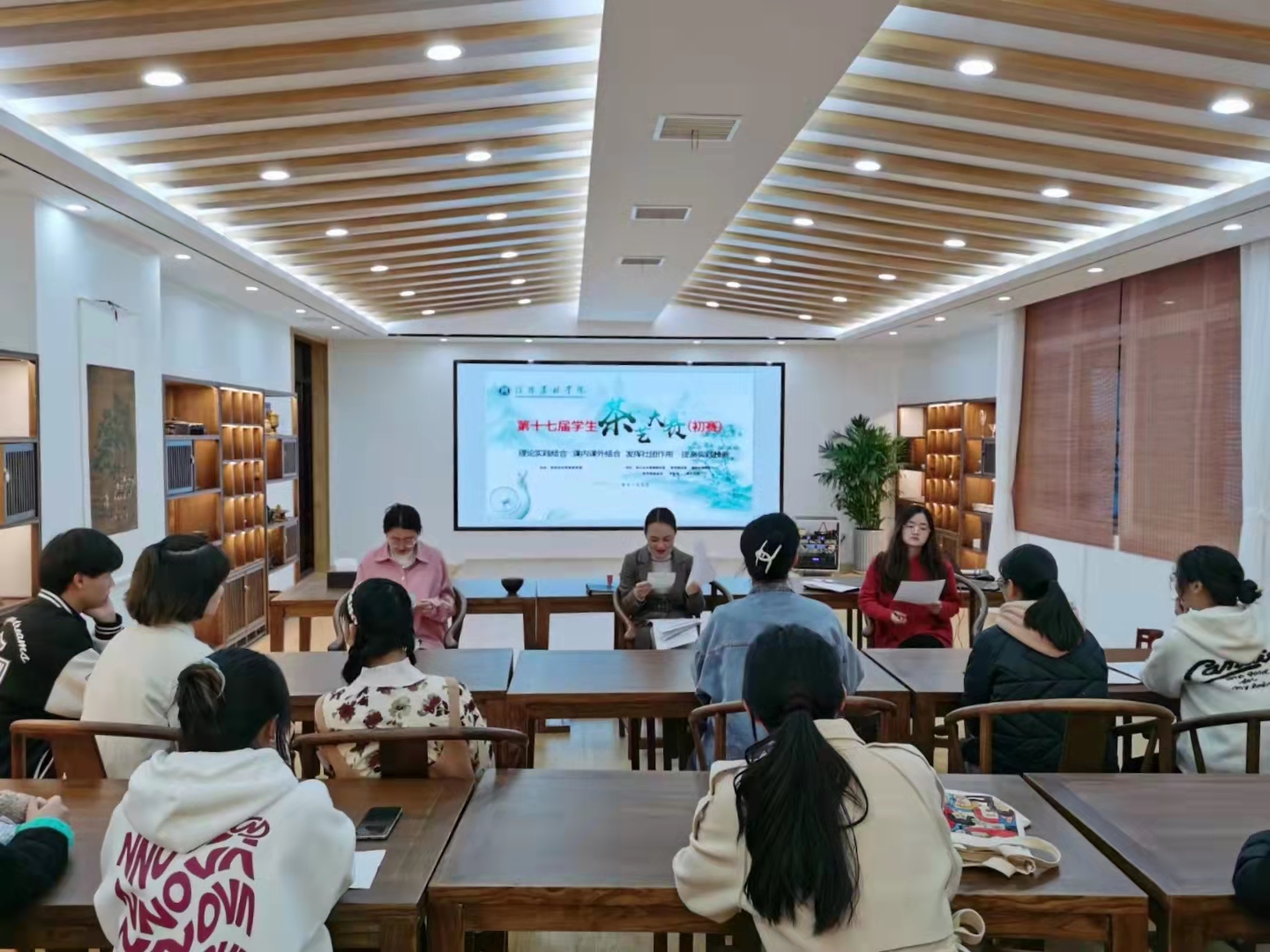 经过前期紧锣密鼓的宣传、筹备、练习,共有十一支队伍参加初赛。经历四个多小时的紧张比赛,最终产生进入决赛的名单。参赛选手将茶艺理论知识人文素养知识相融合,不断充实表演内容,提炼茶艺主题思想,用完整流畅且富有观赏性的形式展现风采。其中有展现历史人物豪情壮志的《英雄本色》、《茶事丹心》;有鲁迅先生的《喝茶》之道,有致敬屈原情怀的《汨罗殇》、有跨越海峡重归故里的《海峡情久,浅茶系心》,还有展示宋代点茶风貌的《宋代茶事》,彰显革命英烈追逐光明的《觉醒年代(新编)》,呈现青春中的迷茫与美好,相依与扶持的《玫瑰少年》、《放下》、《喝杯好茶,致意青春》。参赛选手,以茶表心意,以茶敬先辈,以茶融情怀。