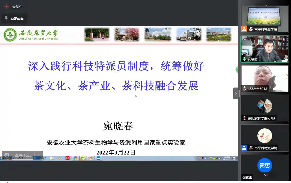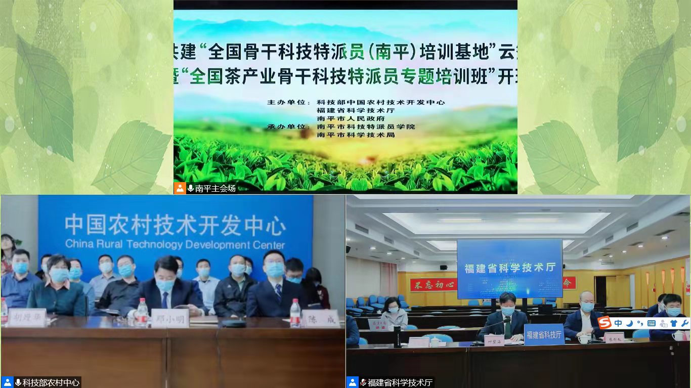 为贯彻落实2021年习近平总书记考察福建作出的关于深入推进科技特派员制度和“三茶”统筹发展重要讲话精神,2022年3月21日至24日,由中国农村技术开发中心、福建省科技厅、南平市人民政府主办的“全国茶产业骨干科技特派员专题培训班”在线上举行。河南省省级科技特派员孙慕芳副教授、陈义副教授、教师张洁和尹鹏参加了此次培训班的培训。