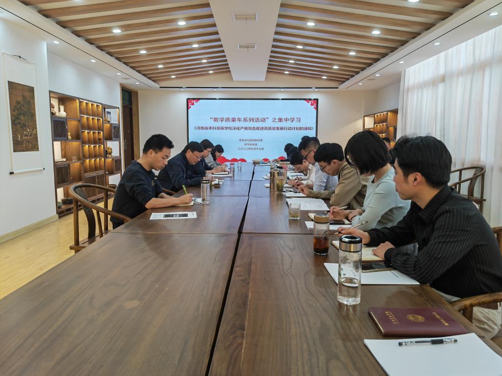 5月17日,按照学校关于开展“教学质量年”活动的安排,茶学院茶学教研室及茶文化与营销教研室组织教研室全体教师,开展《河南省教育厅关于印发河南省本科高等学校深化产教融合促进高质量发展行动计划的通知》和《河南省教育厅关于加强本科高校实践教学体系建设的指导意见》系列学习活动。