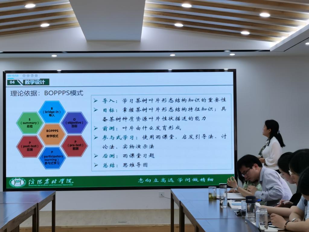 本次比赛共22名教师参加,青年组13人和新进教师组9人,根据茶学院本次教学比赛赛事要求,参赛者说课3-5分钟,讲课15分钟,评委从教师语言教态、课件、课程设计、教学内容、教学方法等多方面对参赛教师进行综合评价。各参赛选手准备充分,精神饱满,教学方法新颖,教学过程设计合理,教学内容流畅,前后衔接自如,体现了我院教师的教学风采。
