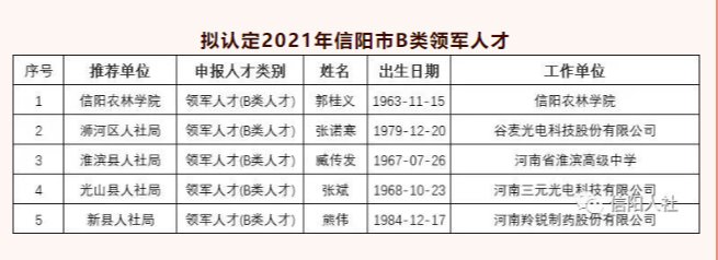 根据《信阳市高层次人才认定和支持方法》和《关于做好2021年信阳市高层次人才认定工作的通知》的要求,信阳市开展了高层次人才认定工作,茶学院20名教师被认定为信阳市高层次人才,其中教育部高等学校名师奖获得者、“中原千人计划”中原领军人才中原教学名师、二级教授、茶学院院长、党总支书记郭桂义被认定为高层次人才B类领军人才,全市仅有5名;D类骨干人才1人;E类青年人才18人。