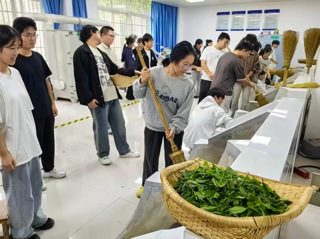 按照茶学人才培养方案和《制茶学》课程教学安排,茶学23-1班、茶学23-2班、茶学(专升本)24-1班等7个班级共计261位同学于9月8日-9月30日分批次展开的制茶学课程实习顺利完成。本次制茶实习在茶学实验教学中心信阳毛尖加工实训室和六大茶类加工实训室进行。《制茶学》课程组教师陈义、王子浩参与指导。