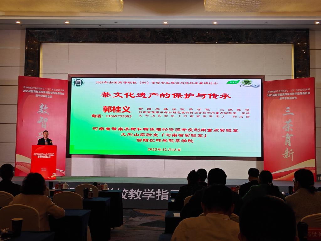 12月13至14日,茶学院教师团队应邀参加由教育部高等学校教学指导委员会茶学学科组在武夷山市举办的2025年全国茶学学科组会议,该会议是国内茶学领域经验交流、资源共享的高水平会议。beat365在线平台官网茶学院院长孙慕芳教授、河南省豫南茶树和特色植物资源开发利用重点实验室主任郭桂义教授、教研室主任及专任教师代表参会。