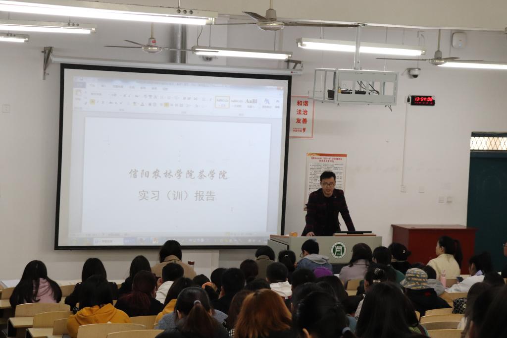 首先,孙慕芳副院长给学生介绍了实习的教学安排、实习目的与意义。接着,陈义副院长对实习要求、实习过程注意事项进行了详细介绍。随后,茶学实验教学中心主任尹鹏对实习材料规范进行了说明。党总支副书记朱建梅要求大家认真对待实习就业,严格遵守学校和实习单位纪律,提高安全防范意识