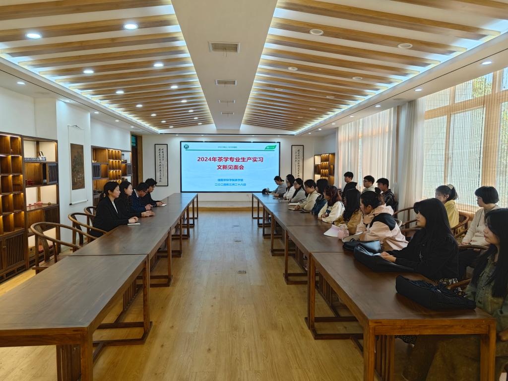 茶学院与信阳市文新茶叶有限责任公司长期以来建立了良好的校外实习实训及产学研合作关系。3月28日,在茶学院1C201召开2024年茶学专业生产实习信阳市文新茶叶有限责任公司见面会,茶学院副院长尹鹏、文新茶叶公司代表向宁、生产实习负责人朱尧及17名大三实习生参会。文新茶叶公司代表介绍了信阳市文新茶叶有限责任公司基本情况及生产实习概况。副院长尹鹏指出茶学专业生产实习是学习掌握茶叶生产一线实际问题,以实现茶叶技能实训、岗位体验、就业实践的必要环节,并对同学们的实习成长提出殷切期望。