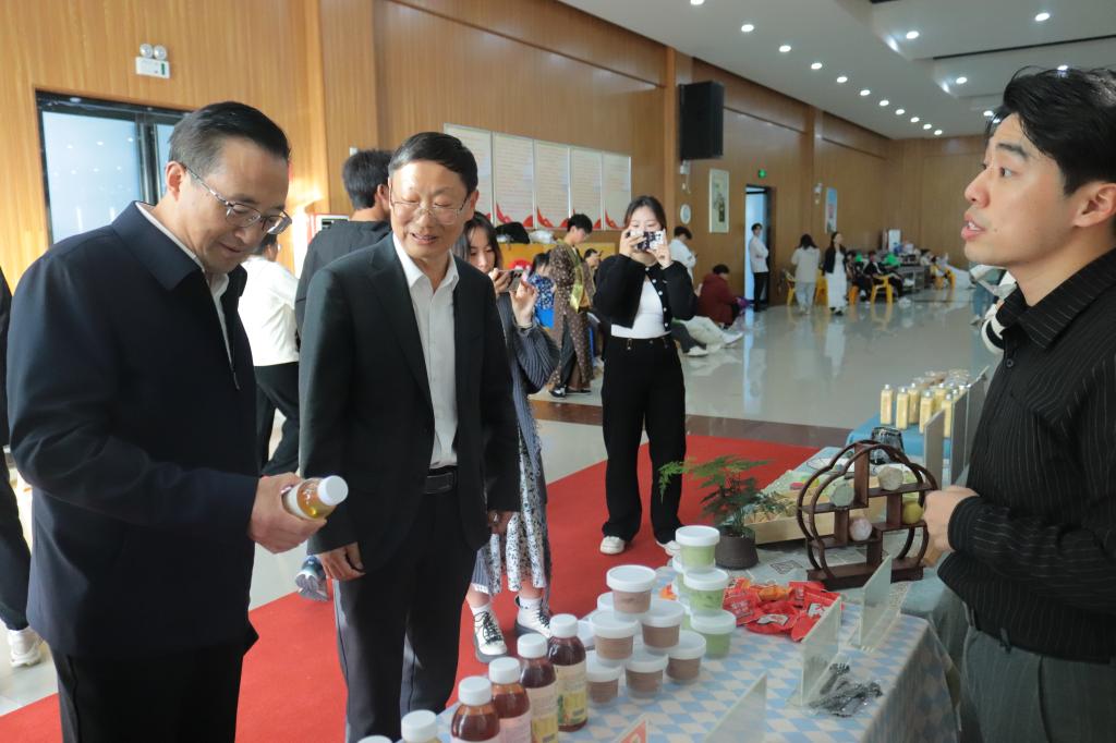 开幕式前,校领导和来访嘉宾观看了现场展示的《茶叶综合利用》课程实验作品-精致茶点和新式茶饮、《茶树栽培育种学》课程实习学生作品成果-茶树品种分类和茶树叶脉画、《制茶学》课程实训学生炒制的经典茶类、《茶艺学》课程成果茶席展、茶叶标本、茶艺和茶文化知识展板等,对茶学院的专业设置和人才培养模式给予了充分肯定。