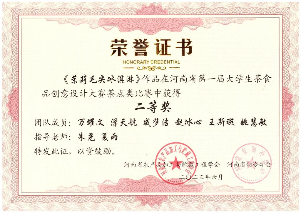我院学子在河南省第一届大学生茶食品创意设计大赛获得最佳风味奖与二等奖